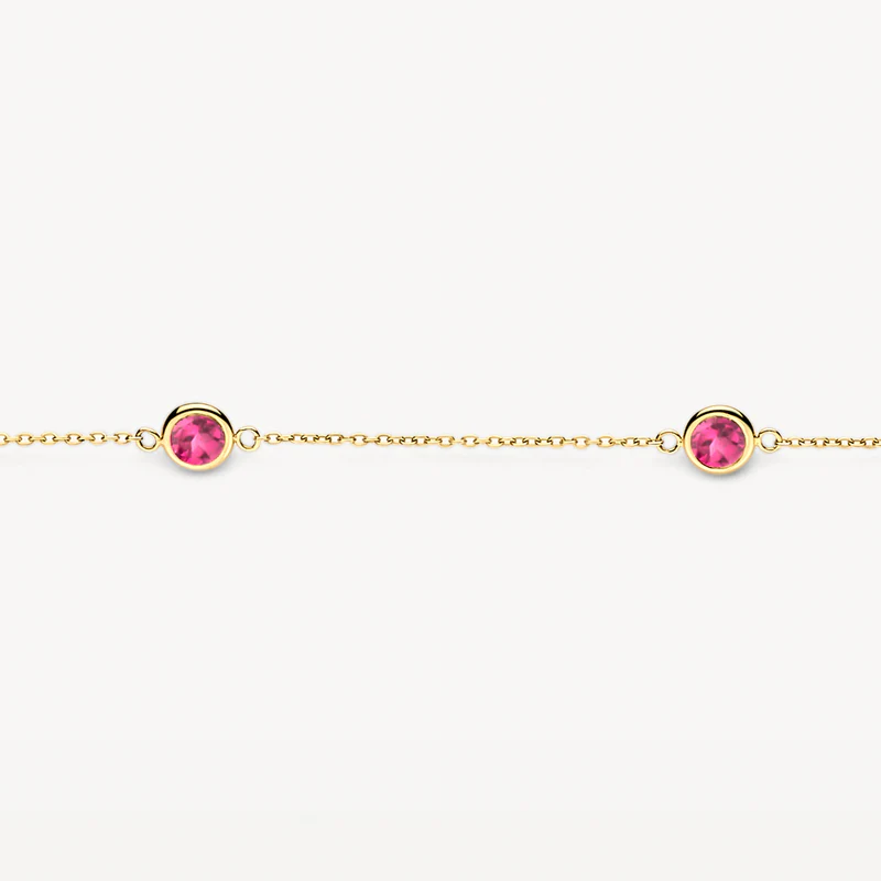 Deze prachtige 14k geelgouden schakelarmband van 18 cm siert je pols elegant. De fijne anker schakel is verrijkt met vijf sprankelende Rhodoliet edelstenen, elk vakkundig gezet in een gladde omzetting. Met een diameter van 0.8 mm voor de schakels is dit een subtiele en tijdloze toevoeging aan jouw sieradencollectie.