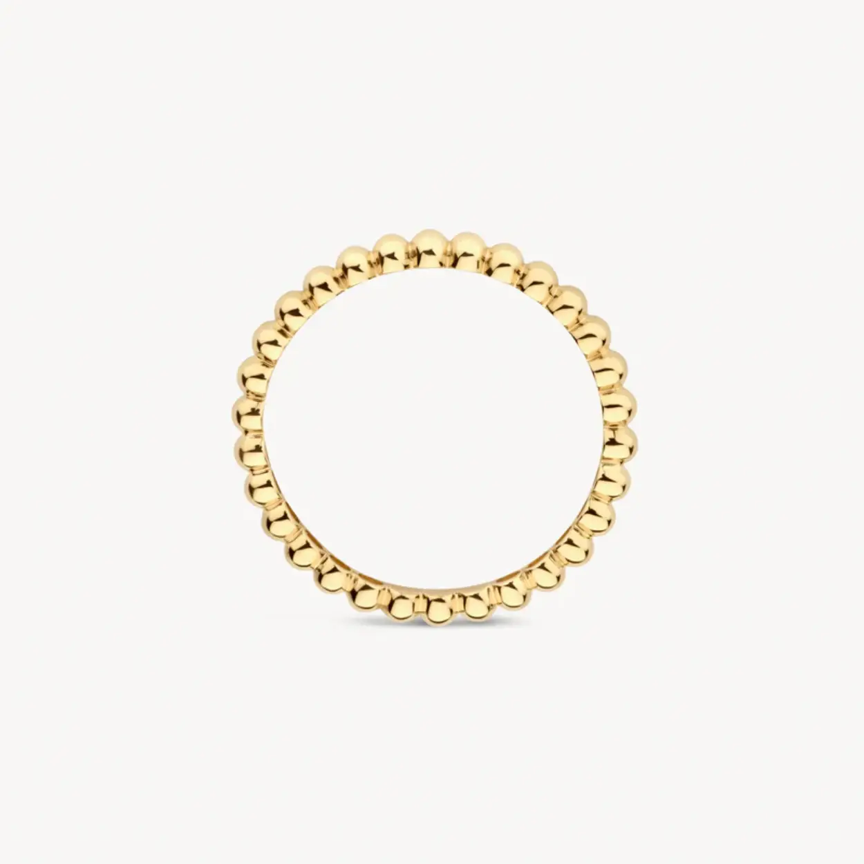 Een deel van de band van deze 14k geelgouden ring heeft een speels bolletjesmotief. De band is 2 mm breed. Mooi te mixen en matchen met andere ringen uit onze collectie.