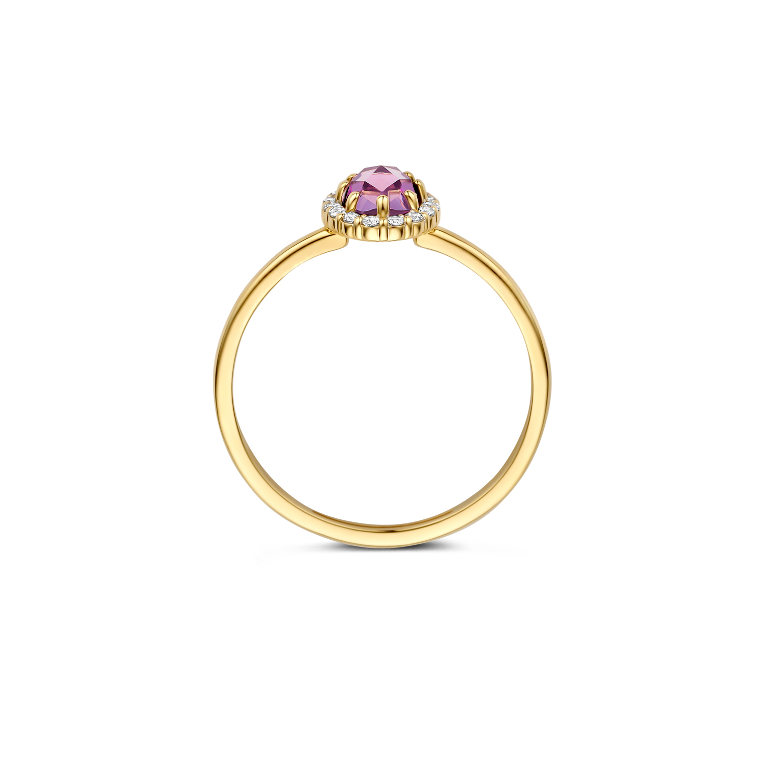 Blush Jewels worden met zorg, liefde en oog voor detail gemaakt van 14 karaat goud. Deze 14 karaat geelgouden Blush ring met referentie 1271YAM is voorzien van een ovale Amethist omringt door briljant geslepen zirconia's. Deze ring met Amethist is een echte eye catcher en zorgt voor een elegant-vrouwelijke uitstraling. Blush Jewels worden geleverd in een Blush cadeauverpakking.