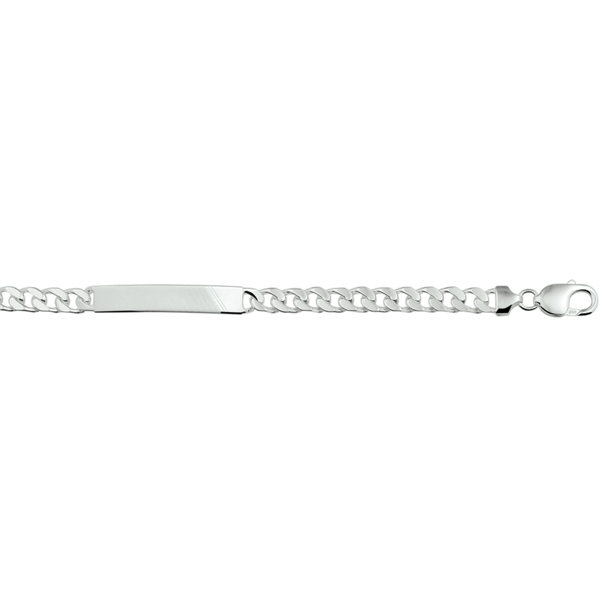 Zilveren graveerarmband. De lengte bedraagt 21cm en de breedte van de graveerplaat bedraagt 7mm en de dikte is 2mm.