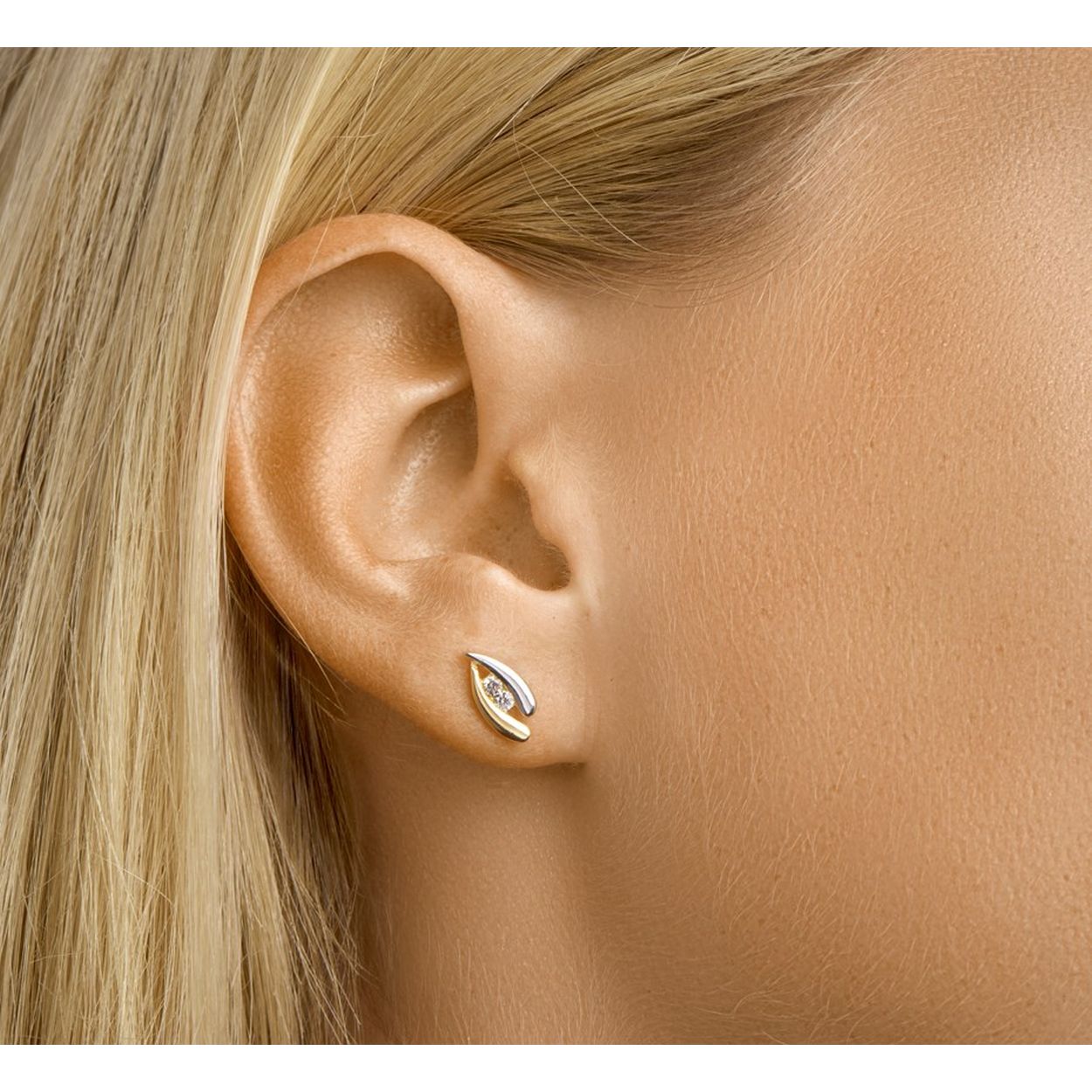 14k Bicolor geel- en witgouden oorknoppen uitgevoerd met een schitterende zirkonia rij. De afmeting van de oorknoppen is 11x5.5mm.
