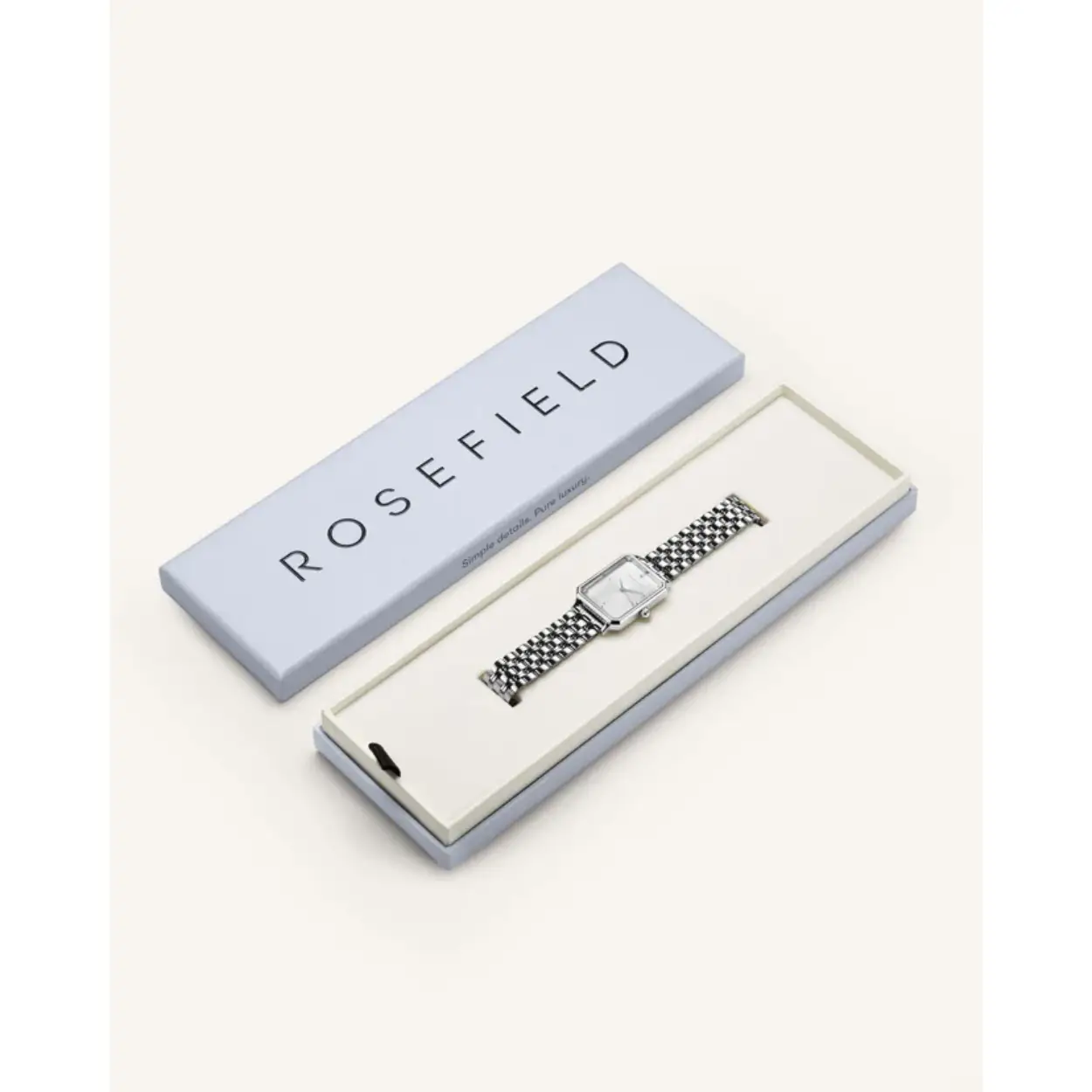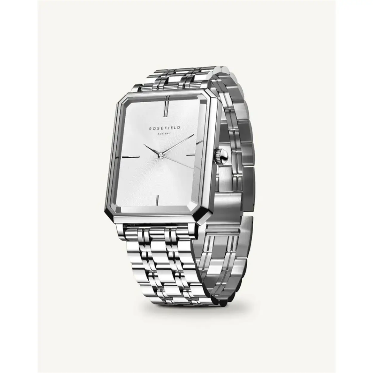 Ontdek The Octagon, Rosefield's nieuwste horlogecollectie — direct een klassieker. Dit bijzondere horloge met achthoekige klok en gepolijste gouden 5-schakel band stralen een elegantie van 1920 elegantie uit en maken dit horloge tot een waar fashion accessoire.