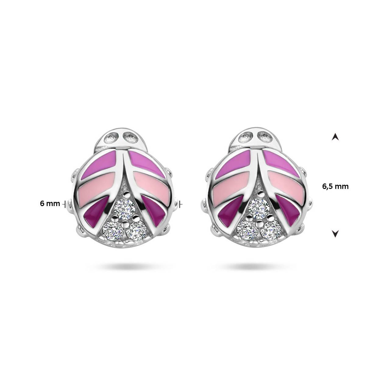 Zilveren kinder oorknoppen lieveheersbeestje zirkonia
