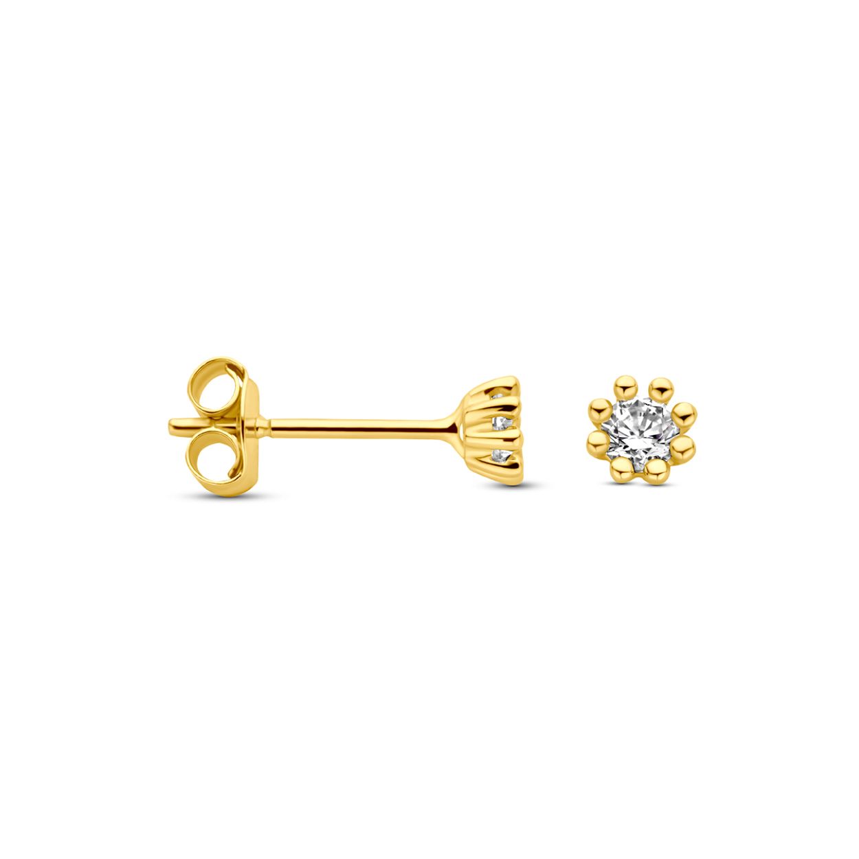 14k Geelgouden oorknoppen uitgevoerd met zirkonia. De oorknoppen hebben een diameter van 3.5mm.