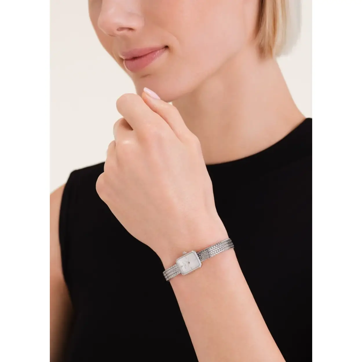 Mini Octagon White Dial Silver Woven Mesh Strap