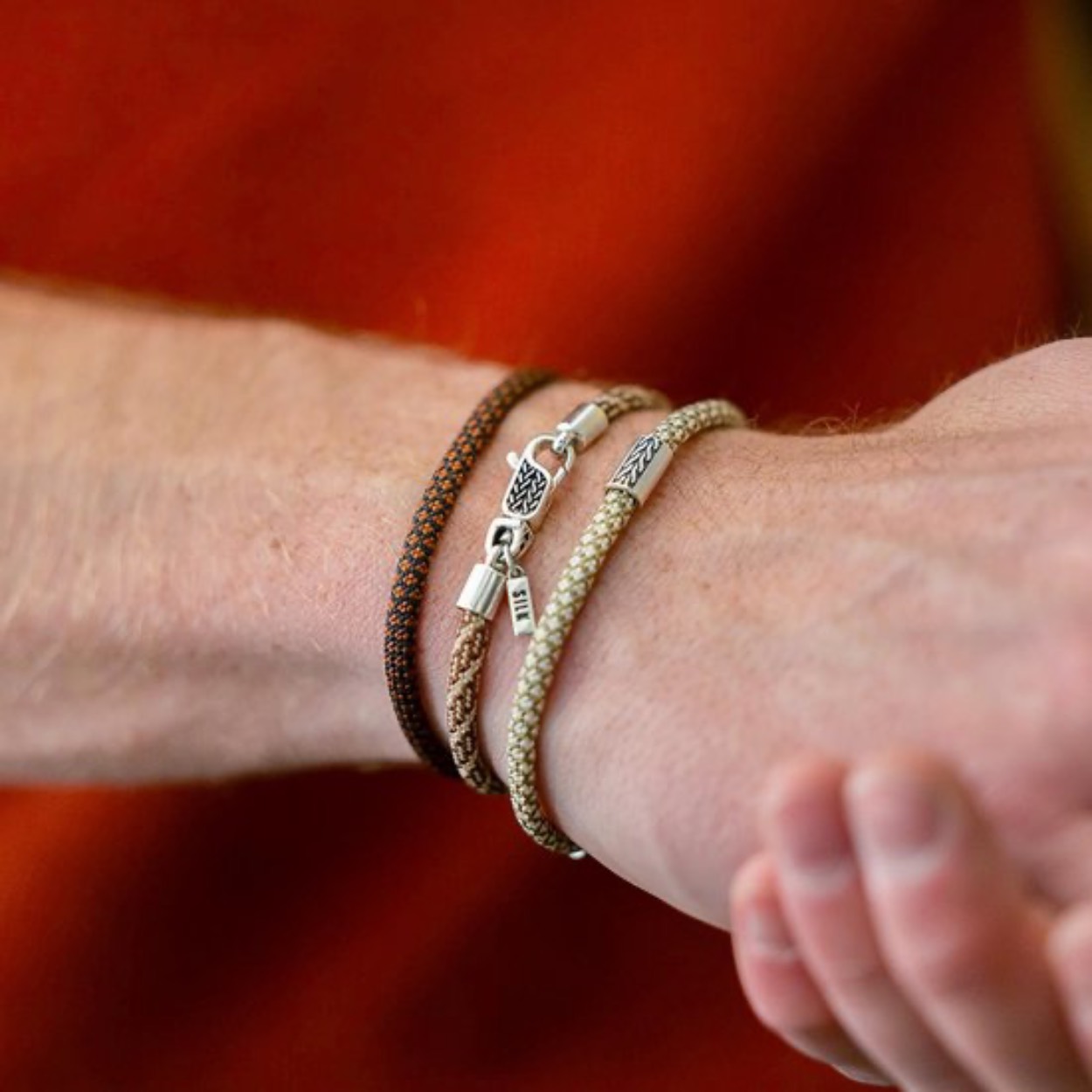 Ontdek de Nieuwe Terra Paracord Armbanden van SILKDe nieuwste toevoeging aan de SILK collectie zijn de Azure, Emerald en Terra paracord armbanden, ontworpen met een luxe zilveren karabijnsluiting. Deze diepgekleurde armbandjes voegen stijl en kleur toe aan je arm en zijn verkrijgbaar in twee varianten: een met charm en een zonder charm.Stijlvol & Functioneel De sterke, duurzame paracord armbanden zijn in verschillende lengte maten verkrijgbaar en passen perfect bij elke gelegenheid. Deze collectie is ontworpen om kleur toe te voegen aan je zilverstack. Door de paracord armbanden te combineren met andere sieraden creëer je een kleurrijk en speels geheel, ideaal voor een unieke en opvallende look.