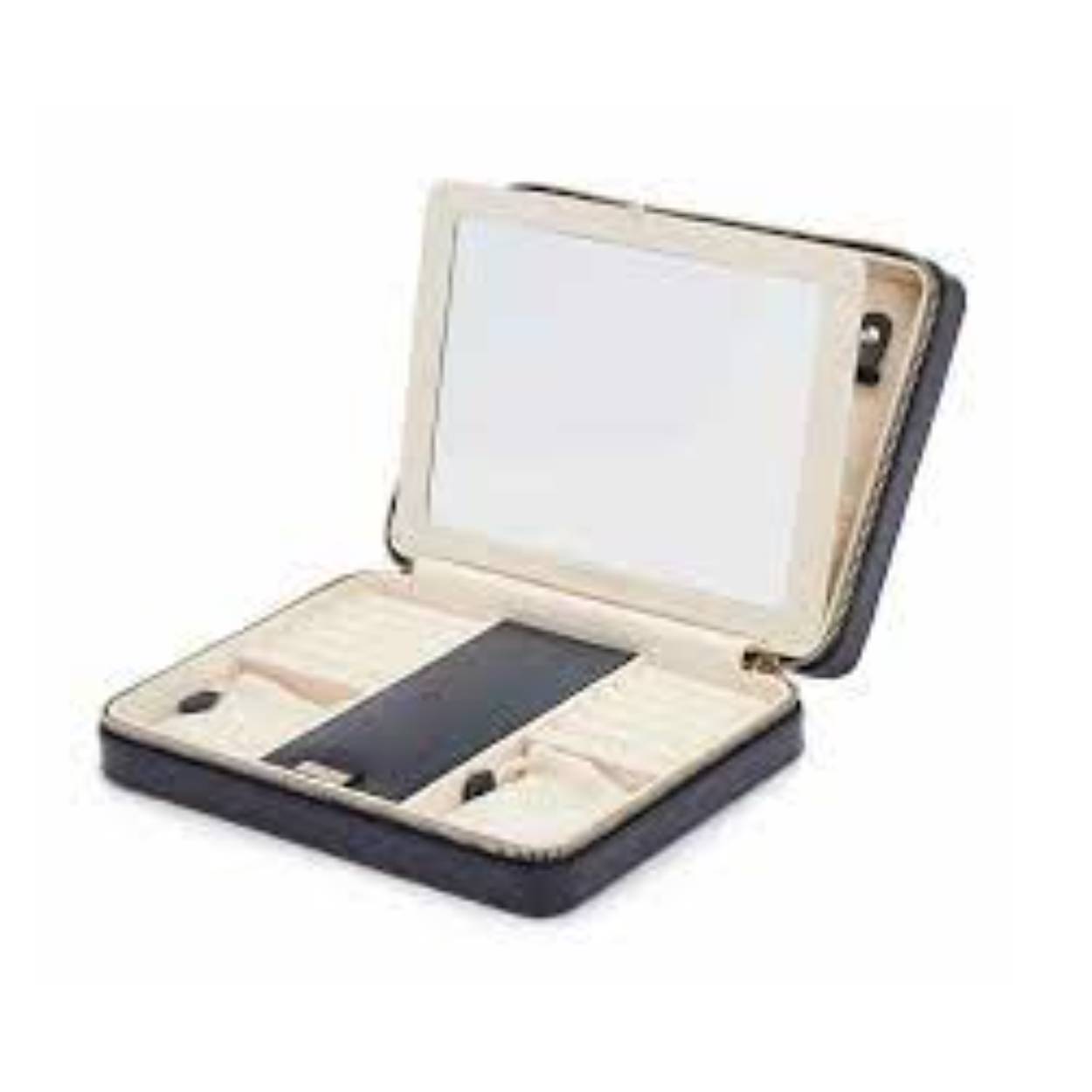 Deze prachtige mosterdgele sieraden Jewellery box biedt ruimte aan wel 30 ringen. Ook kunnen er aan de haken achter het spiegelgedeelte 6 colliers opgehangen worden. Achter spiegel zit tevens ook een ringenrol en een oorhangerrol. Verder zijn er nog enkele opbergvakken met opbergzakjes.