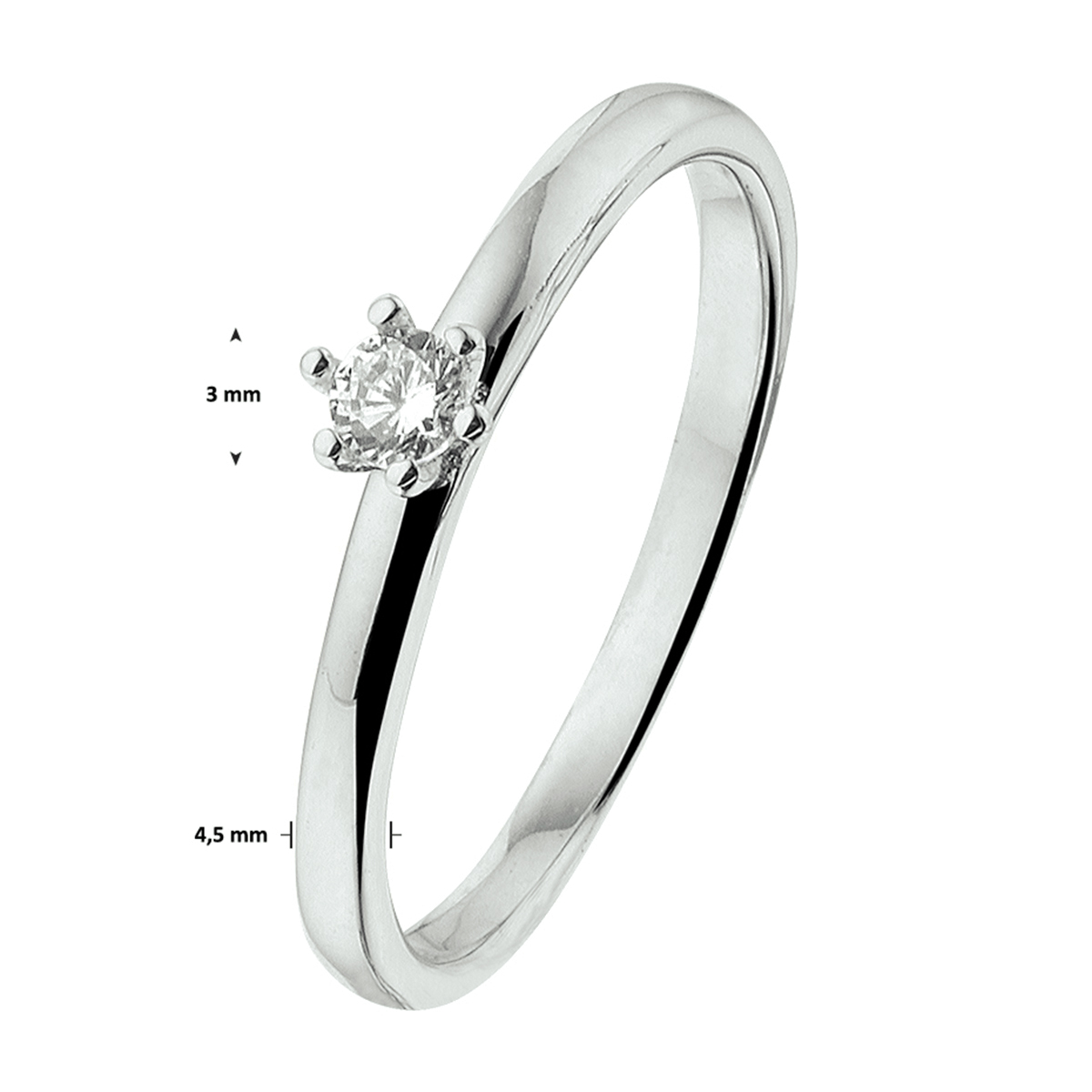 Klassiek gerhodineerd zilveren ring uitgevoerd met een briljant geslepen zirkonia van 3mm in een chaton zetting. Door het simplistische klassieke design is deze ring gemakkelijk te combineren met andere sieraden. Zo maak je elke keer weer een schitterende