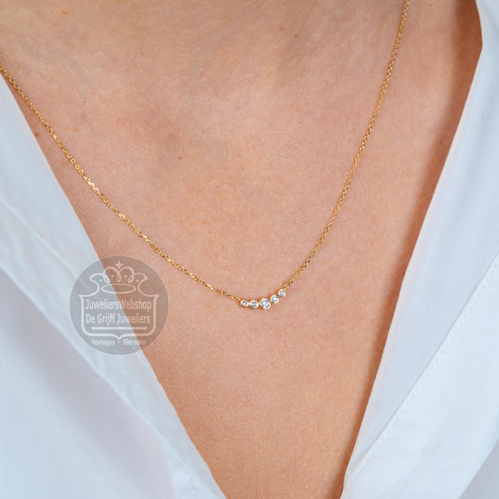 ZINZI GOLD collier 5x aflopende zirc.in kastje