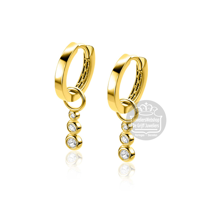 ZINZI GOLD oorbedels 3x zirc.aflopend in kastje