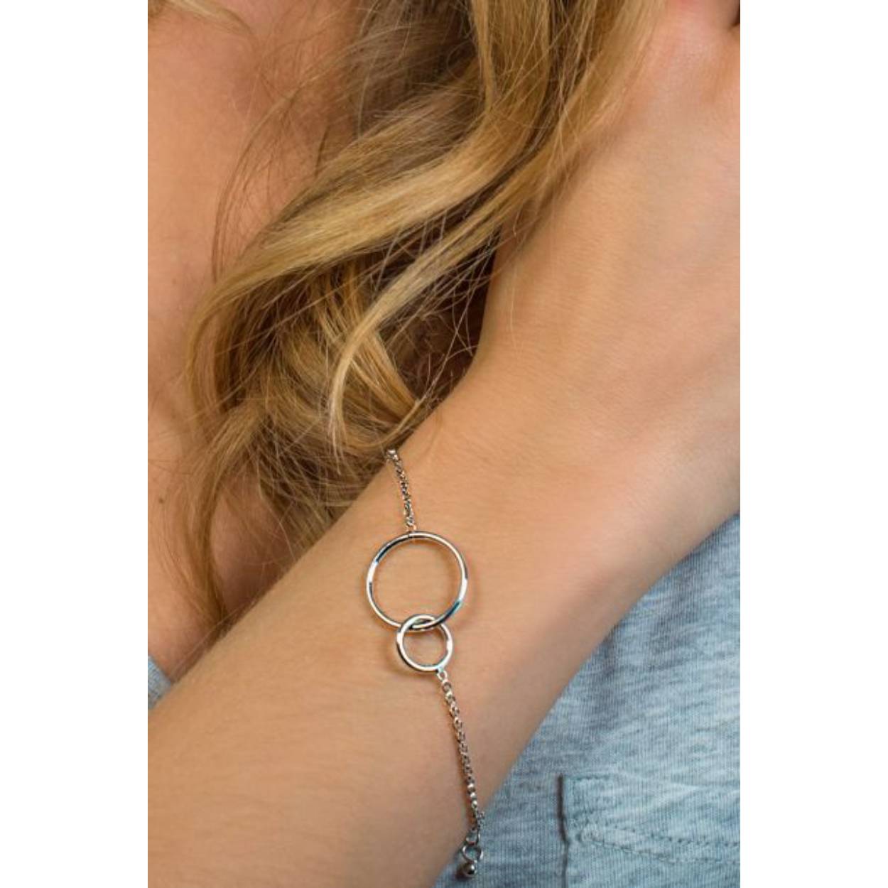 ZINZI zilveren trendy armband, waarbij in het midden twee ronde vormen mooi met elkaar verbonden zijn. De lengte is te variëren tussen 16 en 19cm. Met herkenbaar Zinzi hartje bij de sluiting. Vervaardigd van eerste gehalte zilver (925) en met extra rodiumlaag voor een langdurige glans.
